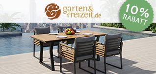 Sichern Sie sich 10% Rabatt im Onlineshop von garten-und-freizeit.de auf das gesamte Sortiment & entdecken Sie moderne Gartenmöbel für Ihren Sommer. |