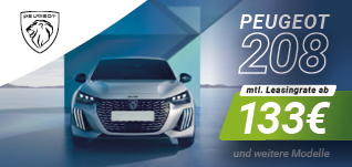 Elektrisch & stilvoll mit Peugeot durchstarten – z. B. den 208 schon ab EUR 133 mtl. Leasingrate. Fordern Sie noch heute Ihr individuelles Angebot an! |